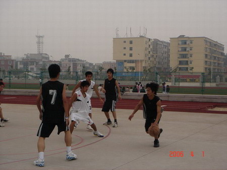 4月1日下午3点,我系篮球队和电子信息系在南区篮球场上进行了一场激烈的对抗赛。或许上天确实是在和我们开玩笑,在愚人节那天我们队以5分之差又不幸败北。