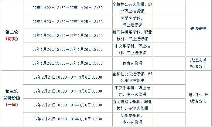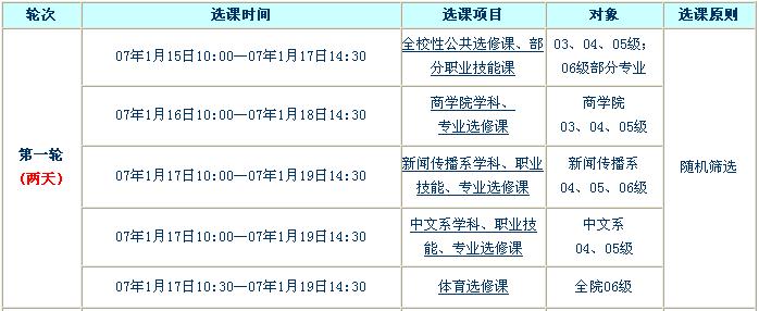 三、网上选课分为三轮(其中体育选修课分为两轮),每一轮选课的特点、操作要求等见后面的“选课安排”。