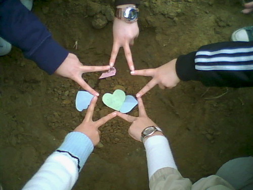 干着干着,学姐们拿来了他们精心制做的许愿心形小纸条,让我们写下心愿,种在树下,和小树苗一起成长,变成现实。
