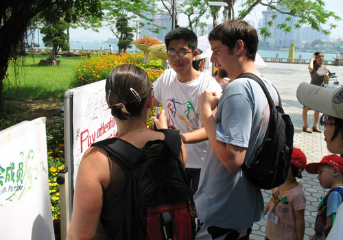活动开始了。志愿者们向大家介绍了本次无烟运动的活动内容,教小朋友认识海报上的文字和其意思。接着无烟鼓浪屿支持者开始在我们的倡议书上签名。小朋友们首先拿起笔,有秩序地把自己的名字或者代表自己的符号签在前面的宣传板上,他们都是支持无烟环境的小小捍卫者,孩子纯真的爱心打动了周围的每一人。