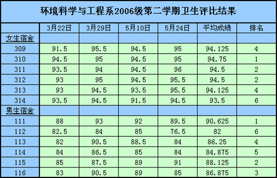 环境科学与工程系06级06-07(2)宿舍卫生评比结果…