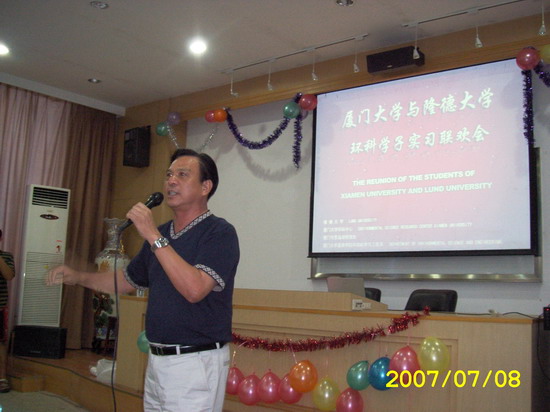 7月8日下午,我们嘉庚学院环境科学与工程系05级学生与本部04级环境科学系学生以及7名瑞典留学生,在系主任卢昌义教授,专业老师周亮、高海燕,实验员黄强以及陈清秀老师、谢阿琳老师的参加下举行了厦门大学与隆德大学的环科学子实习联欢会。