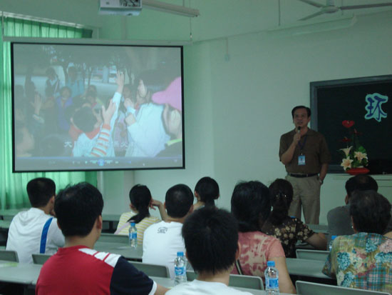 新生及家长们首先观看了我系的宣传视频,视频回顾了我系组建来的各项活动,包括红树林自然保护区教学实习、环境监测实验等教学内容,我系环保协会举办的“无烟校园”、“3.12植树”等公益活动及其他课余娱乐等。