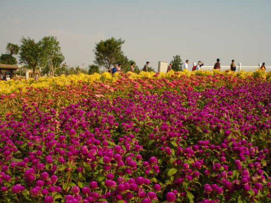 厦门园博园是国内首个按园林流派建园的景观园,这里汇聚了国内江南园、岭南园、北方园、闽台园、民族风情园等几大园林流派、各色园林的经典之作。走进园博园,就能清晰地感受到各地园林艺术的不同风格、不同魅力,领略到古今园林艺术迥异的美感。顺着主干道园博大道一路望去,尽头是令人啧啧称赞月光环,与园博大道起点“花之门”相呼应。在道路的两边是各区的特色建筑,楼阁间伴有各类花种。我们一行六人完全沉醉于这洋溢着勃勃生机的花海世界中,不时感叹着“此花只应天上有”。