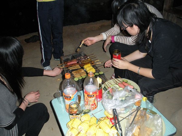 下午,大家开始为晚上的篝火晚会做准备。同学们必须先到山上去捡柴火。说着大家便行动起来,男生女生都干劲十足,捡了一堆又一堆。最累的还属砍柴,男生们挥着镰刀卖力地砍柴,女生们则去负责搭帐篷,互相帮助,相得益彰。在晚上的烧烤中,男生们同样表现出了他们大方的一面,蹲在烧烤架前为女生服务,女生们吃在嘴里,甜在心里。篝火晚会中,同学们更是玩到尽兴。在这些“真心话”“大冒险”游戏的同时,同学们之间也有了更多的了解,更增进了同学之间的友谊和团队精神。