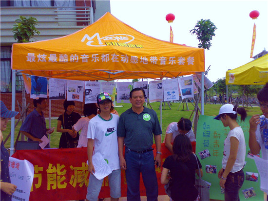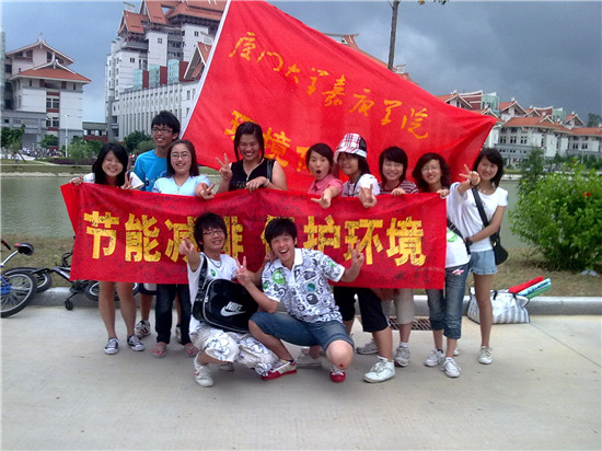 6月13日,校园开放日,环境保护协会于经管大楼旁空地举办了一场以“节能减排,保护环境”为主题的展示活动。