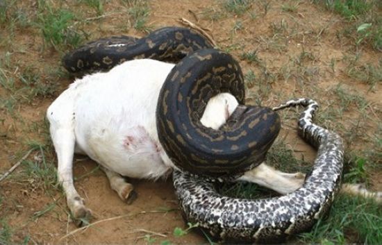 在佛罗里达州南部,缅甸巨蟒原本是人们豢养的宠物。但后来人们不愿照料这些20英尺长的大蛇,便把它们放到了沼泽中。一段时间以后,这些巨蟒竟然在沼泽地国家公园建立起一个坚强的根据地。同时,这里也发现了四只非洲岩蟒。生物学家认为这些剧毒的蛇很可能袭击人类。假如两种蛇进行交配,或许会产生一种更可怕的混血儿。