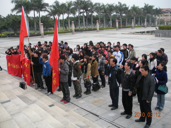 3.12一个为地球增添绿色的日子。我们环协为响应“绿色大学”活动,联合环境科学与工程系一起于南强广场举行植树节宣誓仪式,厦门大学嘉庚学院院长雷锐生,党总支副书记张必华,环境科学与工程系卢昌义主任和多名教师,学工部老师,各系辅导员以及约100名学生参加了此次活动。