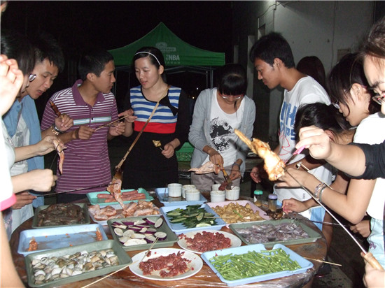 不知不觉就到了晚上,大家开始为海边烧烤忙碌起来,好多东西都是大家烤来一起吃,男生们此时充分表现了自己大方的一面,站在烤架前为女生服务。经过几个小时的努力,大家吃的十分尽兴,几乎烤尽了所有的蔬菜和海鲜。