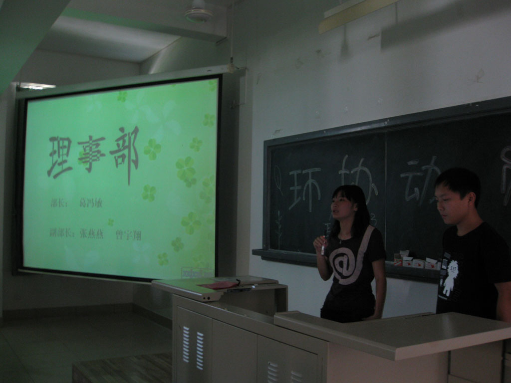 环境保护协会会长魏晴首先对环协的基本情况及发展历程做了简单的介绍,并用图片将去年的一些活动生动地展示出来。如“情满双江,绿动六城”——闽江、九龙江母亲河保护行动、我院“义务植树 绿化校园 美化环境 喜迎校庆”为主题的植树活动、无烟绿色马拉松宣传活动等,使得协会新成员进一步了解了环境保护协会的情况。
