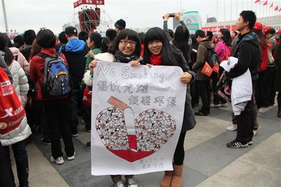 2012年1月7日,一年一度的国际马拉松大赛在厦门拉开了序幕。厦门大学嘉庚学院环境保护协会、厦门山鸟协会和厦门大学蔚蓝协会以“创建无烟世界”为主题,共同举行了无烟绿色马拉松的宣传及签名活动。