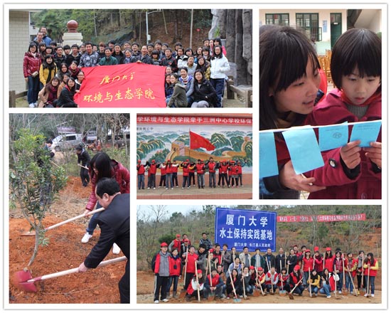 3月11日上午,师生们来到了长汀县三洲镇中心小学,在校园内开展了“环保知识我先行,生态建设我参与”的环保宣教活动。我院师生积极参与到活动当中去,通过开展环保知识竞答、环保灯谜竞猜等活动,对小学生进行全面的环境宣传和教育,增强他们的环境意识,号召小学生们付诸环保实践。下午,我院师生参加了厦门大学水土保持实践基地揭牌仪式,并与当地政府一起在实验地种下60株杨梅树。