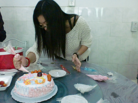 同学专心地制作蛋糕