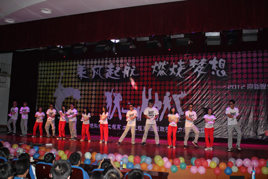 随着音乐渐渐响起,舞蹈演员们纷纷亮相。只听和缓的音乐突然变得欢快起来。原来是《江南style》席卷而来,演员们全是来自土木系的学生,他们的热情洋溢为晚会又添活力。挥舞的双手、蹦踏的双脚似乎在上演着追寻梦想艰辛而又快乐的旅程。