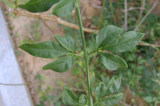 形态描述:常绿半蔓性灌木。嫩枝具四棱,枝条垂软柔美,具四叶对生,三出复叶,小叶椭圆状披针形,常绿。春季开金黄色花,腋生,花冠裂片6-9枚,单瓣或复瓣。性耐阴,全日照或半日照均可,喜温暖植物。花果期3月~4月, 花期过后应修剪整枝,有利再生新枝及开花。