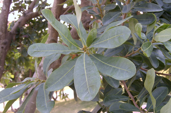 形态描述:常绿乔木;树皮灰色,小枝较粗壮,无毛,皮孔少且不显著。叶革质,楔伏倒卵形至长楔状倒披针形,长6-16厘米,宽1-4厘米,无毛,下面有金黄色腺体;叶柄长2-10毫米。雌雄异株;穗状雄花序单独或数条丛生于叶腋,长1-3厘米,直径3—5毫米,通常不分枝,有密接覆瓦状苞片,每苞片有1雄花;雄花有2-4不孕小苞片及4-6雄蕊;雌花序常单生叶腋,长5-15毫米,有密接覆瓦状苞片,每苞片有1雌花;雌花有4小苞片;子房卵形,有极短花柱及2细长花柱枝。核果球形,径10-15毫米,有乳头状凸起,熟时深红色或紫红色和白色。