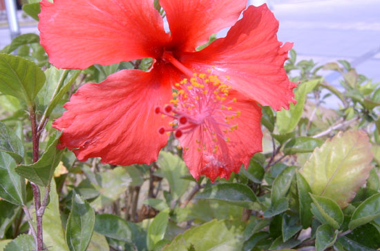 形态描述:茎直立而多分枝,高可达6米。叶互生,阔卵形至狭卵形,长7~10厘米,具3主脉,先端突尖或渐尖,叶缘有粗锯齿或缺刻,基部近全缘,秃净或背脉有少许疏毛,形似桑叶。花大,有下垂或直上之柄,单生于上部叶腋间,有单瓣、重瓣之分;单瓣者漏斗形,通常玫瑰红色,重瓣者非漏斗形,呈红、黄、粉等色,花期全年,夏秋最盛。