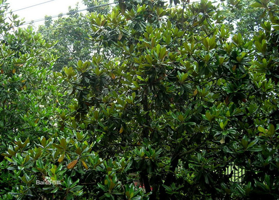 形态描述:常绿乔木,在原产地高达30米;树皮淡褐色或灰色,薄鳞片状开裂;小枝粗壮,具横隔的髓心;小枝、芽、叶下面,叶柄、均密被褐色或灰褐色短绒毛(幼树的叶下面无毛)。叶厚革质,椭圆形,长圆状椭圆形或倒卵状椭圆形,长10-20厘米,宽4-7(10)厘米,先端钝或短钝尖,基部楔形,叶面深绿色,有光泽;侧脉每边8-10条;叶柄长1.5-4厘米,无托叶痕,具深沟。花白色,有芳香,直径15-20厘米;花被片9-12,厚肉质,倒卵形,长6-10厘米,宽5-7厘米;雄蕊长约2厘米,花丝扁平,紫色,花药内向,药隔伸出成短尖;雌蕊群椭圆体形,密被长绒毛;心皮卵形,长1-1.5厘米,花柱呈卷曲状。聚合果圆柱状长圆形或卵圆形,长7-10厘米,径4-5厘米,密被褐色或淡灰黄色绒毛;��背裂,背面圆,顶端外侧具长喙;种子近卵圆形或卵形,长约14毫米,径约6毫米,外种皮红色,除去外种皮的种子,顶端延长成短颈。花期5-6月,果期9-10月。