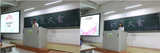 指导老师孟靖岳上台致辞(左)会长林娴慧做环协介绍(右)