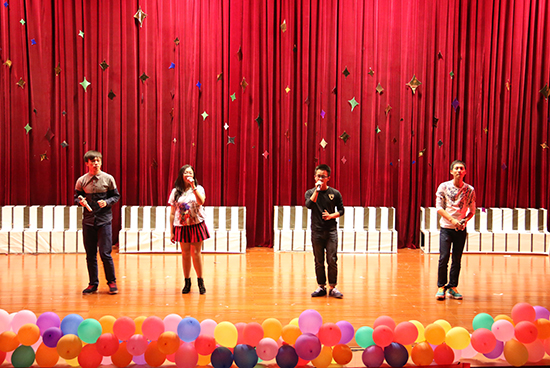 晚会的最后一个节目歌曲串烧由朱育涵、陈志宏、陈淮阳及王琳同学演绎。一首《时间都去哪了》歌声感人动听,不错,回忆起时间我们又几曾想起它们的影子:还没好好的看清父母的样子他们就已经老去了。“树欲静而风不止,子欲养而亲不待”,这首歌正是诉说了这样的心情,莫等时光渐走,及时行孝是作为儿女应尽的义务。