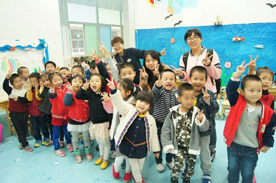 志愿者们为小朋友授课