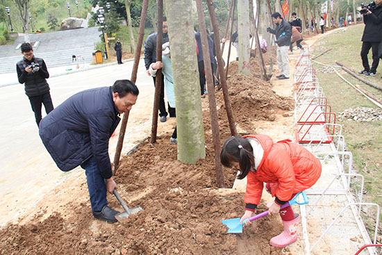 在本次活动中,更是出现了许多感人的画面。许多小朋友积极参与,用着比他们还高的铁锹一点一点的填土“玩”得不亦乐乎。还有一家人、一个部门的人齐心动手,扶苗,填土,浇水,巩固土层、、、、、