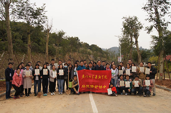 讲解结束后,植树活动正式开始,每个人带上工具,由环协带队,把每只队伍带到9号楼林荫道,分配任务,种植南洋楹。 一个个的土坑,一颗颗的树苗,燃起了大家的斗志,每个人纷纷拿起工具干得热火朝天!环科系卢昌义主任亲历亲为起表率,为环保事业做贡献。一条不大的绿荫道上,随处可见低头苦干的师生们,即使泥土粘满了全身,汗水湿透了脸颊。但内心的愉悦是无法溢于言表的。