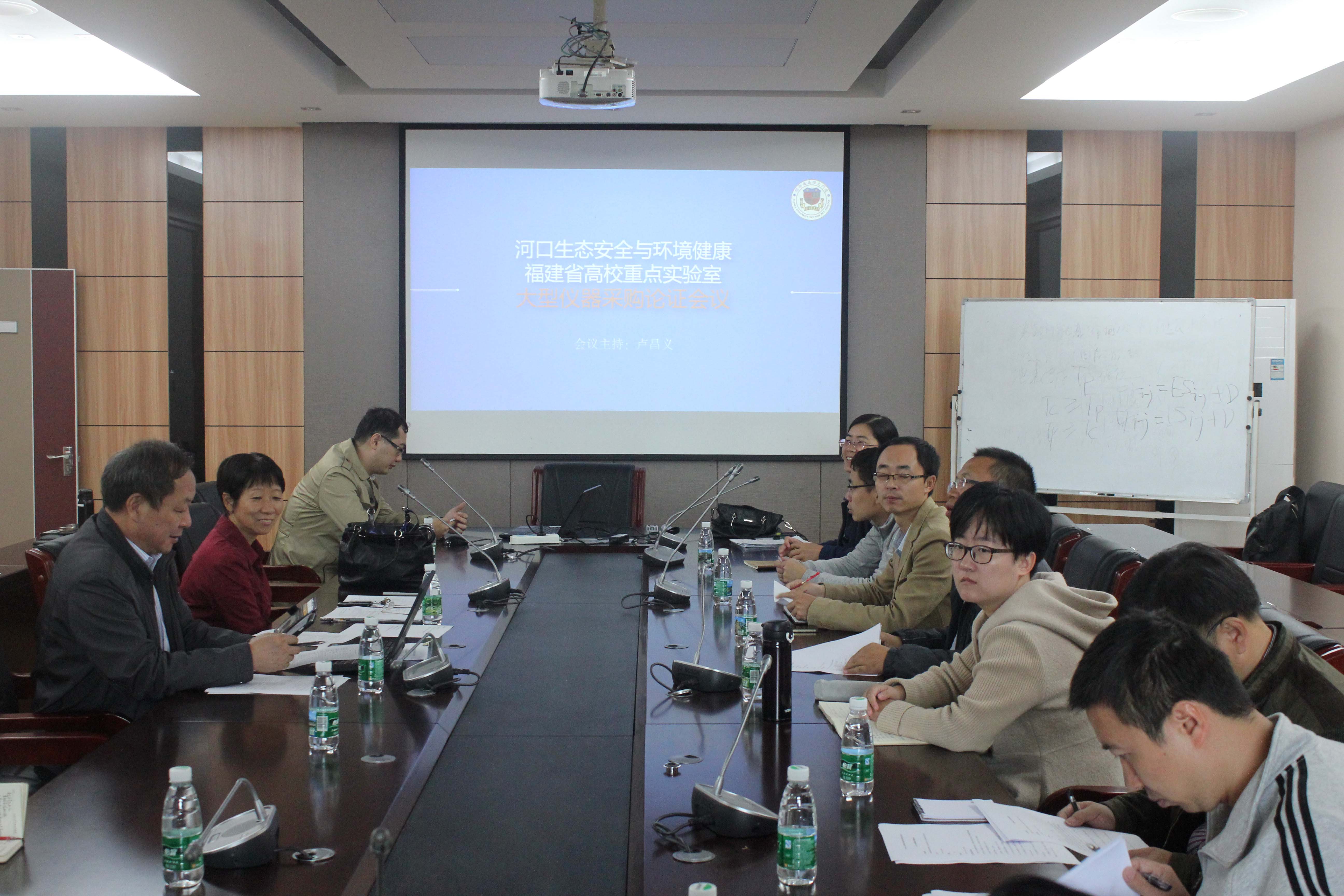 11月25日上午,我校河口生态安全与环境健康福建省高校重点实验室大型仪器采购论证会在生化C会议室召开。会议由重点实验室组织,邀请了厦门大学环境与生态学院专家袁东星、弓振斌两位教授参与论证,还邀请到学校分管实验室的刘暾东副院长进行现场指导,论证会专家和相关人员共计19人。