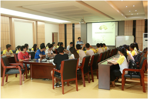 上午10点左右,闽南师范大学的老师以及学生们来到了我校的生化c#416与Regretless团队进行了一场关于红树林的学习会,会议由Regretless的金亮老师、周亮老师、陈慧杰老师以及团队学生进行主持演讲。会议一开始,周亮老师便向闽南师大的各位代表介绍了“我爱中国”红树林湿地公园的建设历程,以及其含义。“我爱中国”红树林公园,其红树林分一种图案排布,在天空看来是“l love China”,而在China处则是由五星红旗的五颗星来表示,非常的宏伟。然后,周亮老师从施工的技术难度,以及和村民的协商沟通两方面向大家阐述了公园建设的不易。其中在技术方面,由于滩涂的特性导致一些专业设备无法使用以及一些专业人士无法下滩涂,于是大家使用了新旧结合的方法来进行定位。而在与村民沟通方面,周亮老师不断强调这是工程中最为困难的一点,当时团队中的环境院院长卢昌义教授不辞辛苦,用简易的投影设施不断地向村民讲述,使他们理解红树林的好处,而且政府的补偿资金及时批下,才解决了这一难题。从中我们可以看出,红树林湿地公园的建设的确不易。紧接着,周亮老师向各位介绍了海沧湾的红树林种植理念以及想要达到的效果,以“清新海沧,生态先行”为开头,从巩固海沧区白鹭生态保护区核心地位、配合海沧海岸线政治工作、推动城市绿化、发挥生态效益、改善海沧湾景观、构建岛屿生态链以及生态补偿和淤泥抛置的储备地这几点,全面讲述了海沧湾红树林种植计划。在介绍完后,闽南师范大学的同学们提出了互花米草的危害性问题,金亮老师则从互花米草方面和红树林方面进行了解释,全场响起了热烈的掌声。