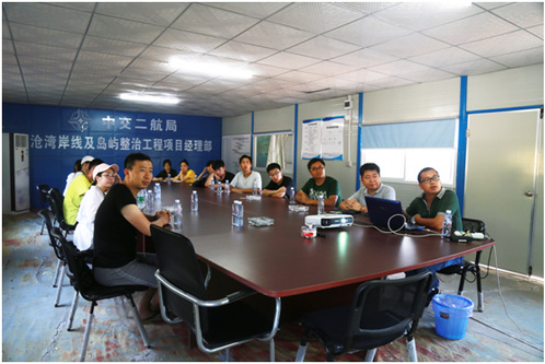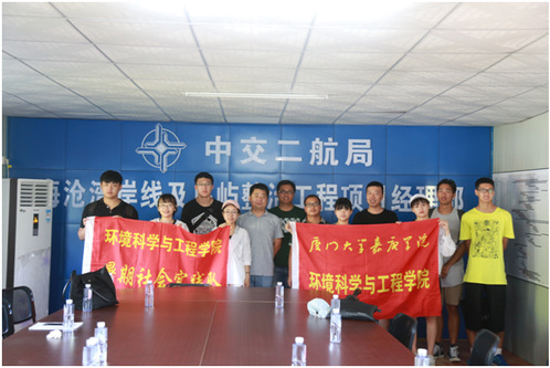 “本项目位于厦门市海沧区海沧湾海域位,本工程岸线整治北起海沧大桥边线,南至嵩屿码头边线,沿湾岸线长约6399m。”在中交第二航务工程局有限公司的会议厅里,王工程师和于总为“Regretless”团队的老师和同学们介绍着海沧湾岸线工程项目。他们详细地介绍了休闲广场、亲水木栈道、红树林施工,认真讲解了工程施工过程中的技术和所遇到的困难,并以视频的形式展示了打桩船的工作情况,以及用图片的形式详细讲解休闲广场、亲水木栈道的工程构造,清楚地展现了施工的过程,使老师和同学们对工程有了更多的认识。