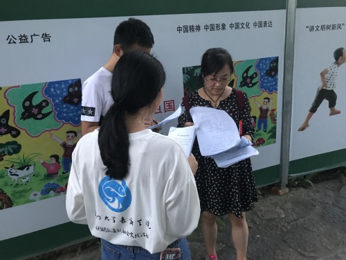 下午5点,团队成员结束了对渔市的阶段调研,转向居民方向进行调研并发放调查问卷。由于先前走访了大大小小五个渔市,团队成员们提高了胆量,在与人沟通方面也越发地熟练起来。团队成员最终确定在金榜公园进行问卷调查,他们两两分组,对居民发放问卷调查。发放过程中,虽然居民们配合度不高,但团队成员依然细心地给居民讲解本次团队“三下乡”活动概况以及“渔利金三角”项目的意义,居民们随之也配合了起来。团队成员以全方位的视角让居民们了解附近渔市情况,致力于提升居民对待渔市环境问题的重视程度。值得一提的是,大部分居民热情填写调查问卷后,主动关注渔利团队微信公众号,并表示对后续发展十分感兴趣。