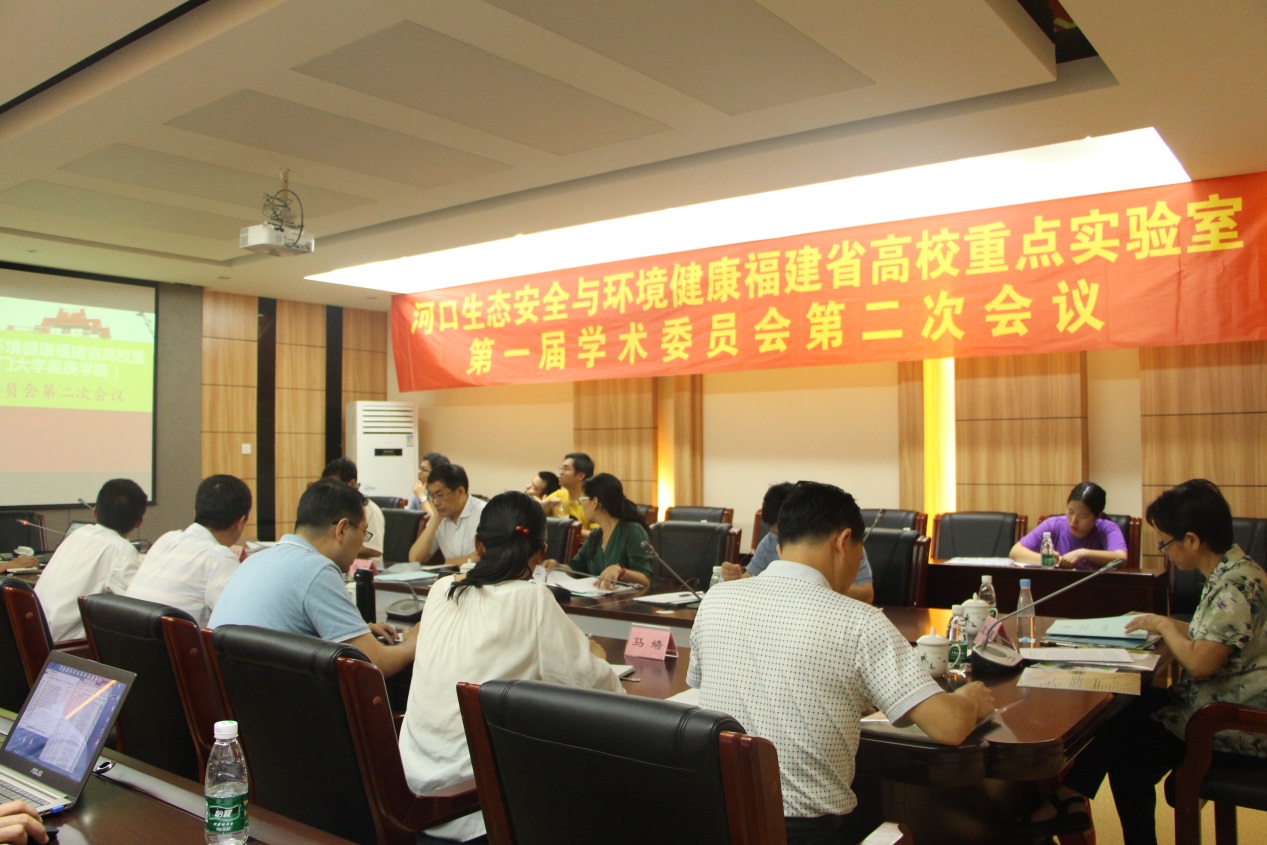 2018年5月30日下午,河口生态安全与环境健康福建省高校重点实验室(以下简称重点实验室)第一届学术委员会第二次会议于厦门大学漳州校区生化C#416会议室召开。参与本次会议的有厦门大学嘉庚学院科研工作部谢清琳部长、6名学术委员会委员(厦门大学环境与生态学院袁东星教授、国家海洋局第三海洋研究所原所长余兴光、环境科学与工程学院院长卢昌义教授、福建师范大学地理科学学院副院长仝川教授、华侨大学土木工程学院苑宝玲教授、厦门水务集团谢小青总经理)、4名重点实验室研究室主任(刘兴强副教授、金亮副教授、孙鲁闽副教授、马嫱副教授)及环境科学与工程学院其他老师合计23人。