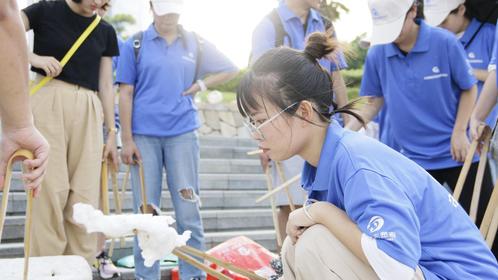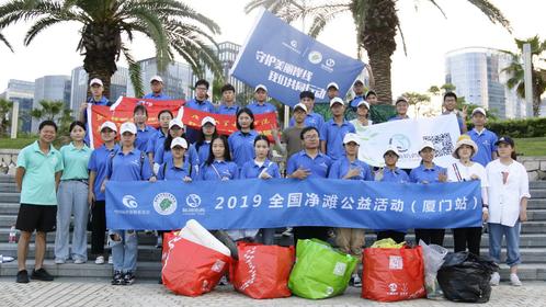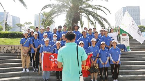 本次净滩活动分为两队,一队是厦大绿野,二队是渔利团队。下午2时左右,渔利团队和厦大绿野到达中国少年先锋队队歌广场,开始分发物资。每个人都有一顶白色帽子,一件印着“守护美丽岸线,我们共同行动”的蓝色衬衫,一个黑色垃圾袋,一个捡垃圾的木质夹子。