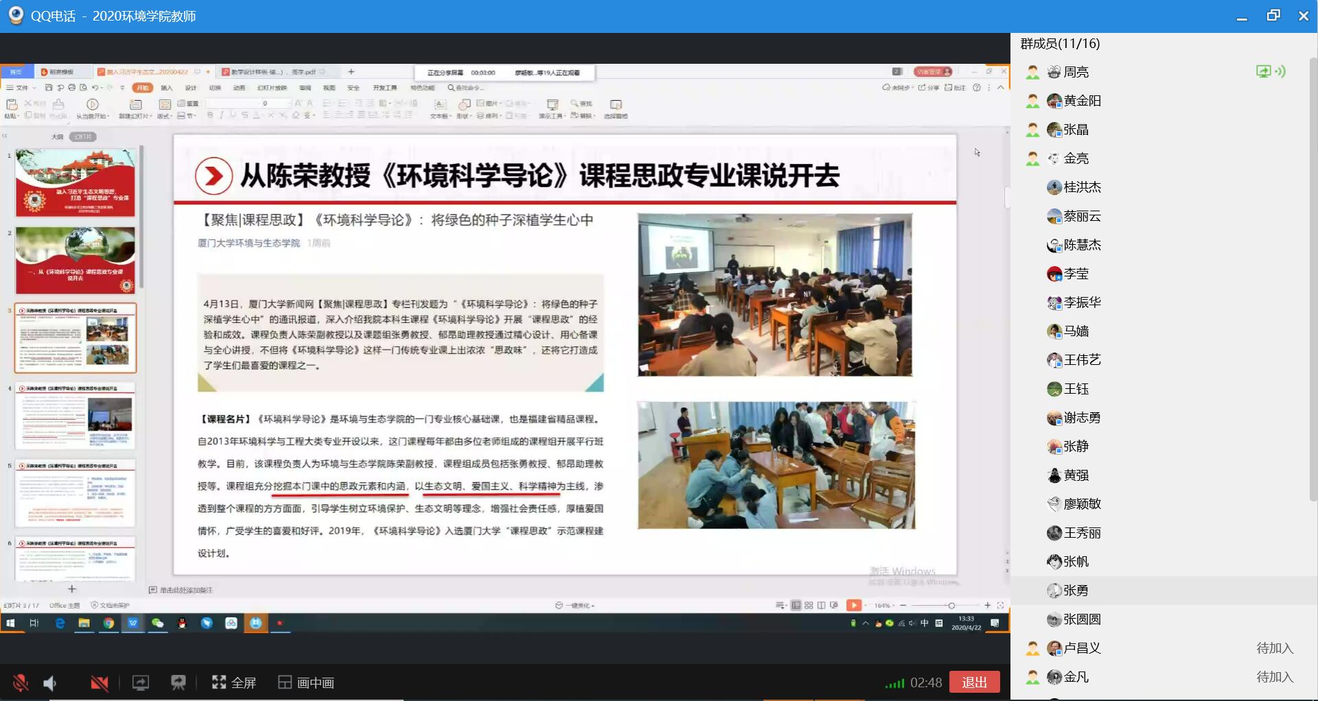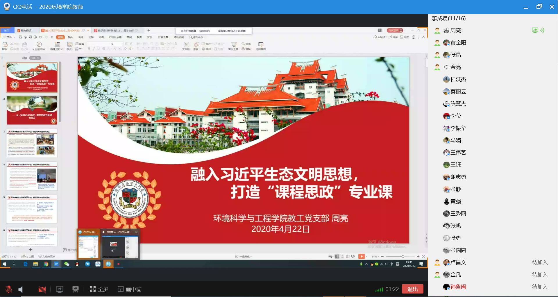 周亮同志的“融入习近平生态文明思想,打造‘课程思政’专业课”微党课
