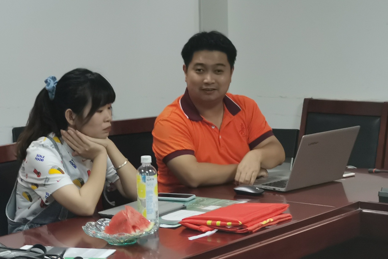 环境学院周亮老师和大学生志愿者代表康黄雅讨论志愿者选拔议题