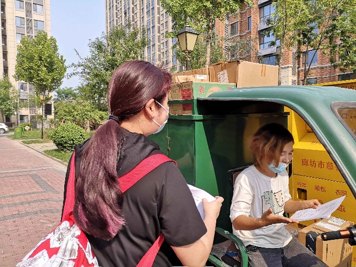 河北省廊坊实践小分队先后前往广阳区与安次区进行实地调查,主要围绕安次区社区进行问卷的发放。在具体的实践过程中,廊坊实践小分队成员不仅对受访者详述与解释问卷问题,还现场教学口罩不正确的居民如何正确佩戴口罩。