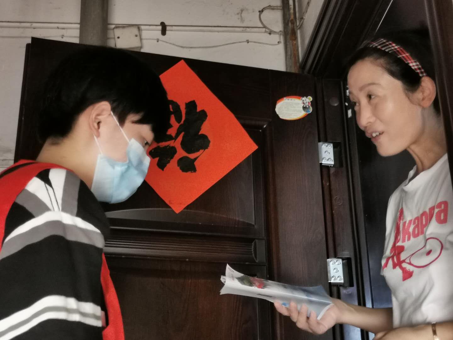 街道巡逻结束后,我们向居民挨家挨户发垃圾分类宣传册,同时进行满意度调查。