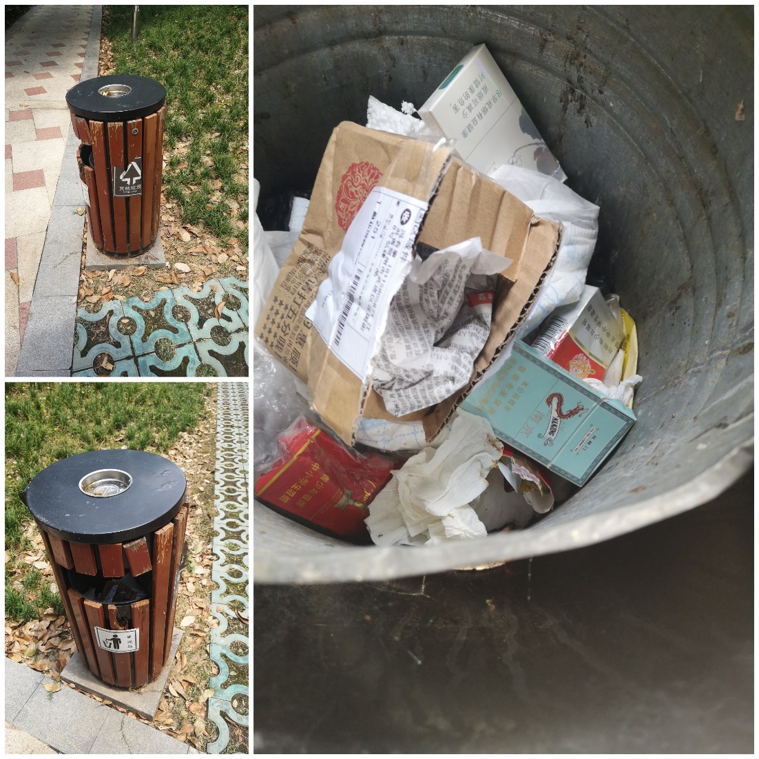 图3 综合垃圾回收处及垃圾桶内的垃圾