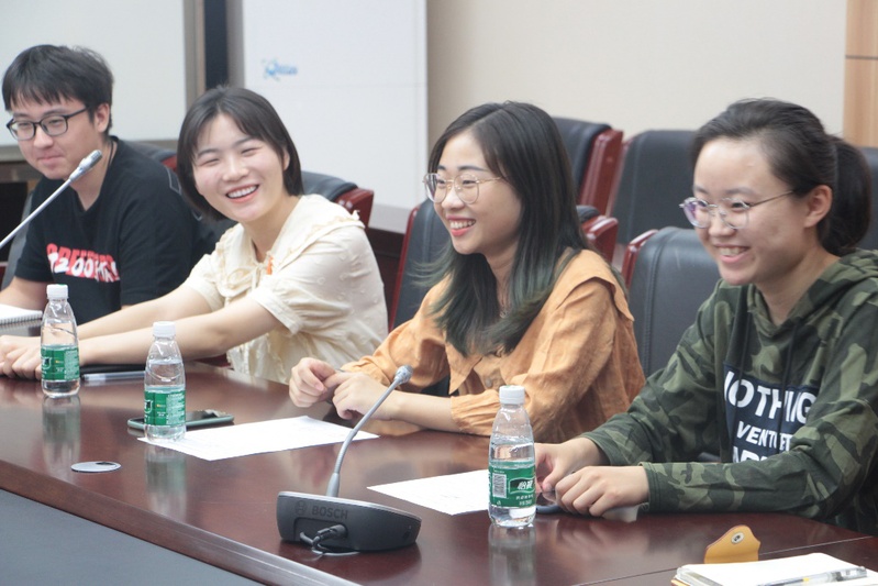 随后与会老师们与四位研究生的进行自由交流。在交流中,四位分别毕业于烟台大学的赵小雨、河南科技学院的于颖奇、厦门大学嘉庚学院的张小丹以及山西大学的卓思棋,对自己的科研兴趣和个人情况进行了详细介绍。