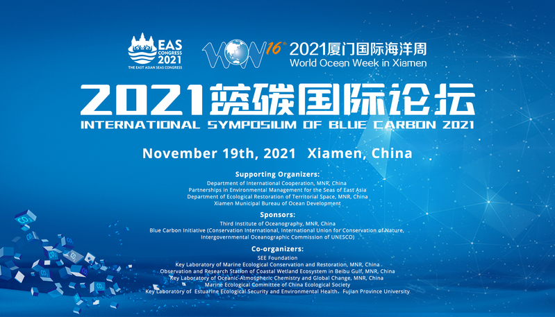 2021年11月19日,2021蓝碳国际论坛在线上如期举办。这是2021厦门国际海洋周系海洋大会系列配套活动,这场论坛由自然资源部第三海洋研究所、“蓝碳倡议”工作组、东亚海环境管理伙伴关系组织(PEMSEA)主办,河口生态安全与环境健康福建省高校重点实验室参与协办。