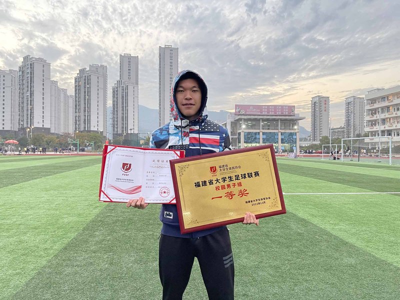 11月进行的2021年福建省大学生足球联赛(校园男子组)中,厦门大学嘉庚学院环境科学与工程学院吴波同学担任厦门大学嘉庚学院足球队队长,在王驰教练的指导下,表现突出,带领校队夺得冠军,并荣获联赛最佳运动员称号。