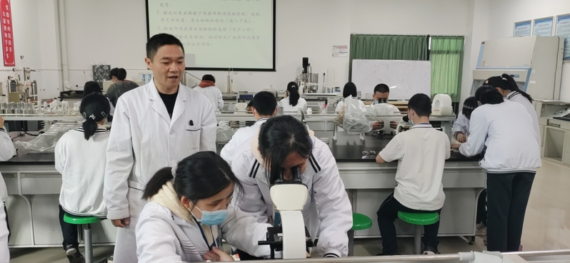 “显微镜的使用及污泥生物相的观察”实验源于《环境学科综合实验Ⅱ》,属于《水处理微生物学》的配套实践课程。环境学院教学实验中心黄强和孙红专两位高级实验师,带领中学生们探索微观世界,用显微镜观察活性污泥菌胶团和生物相。