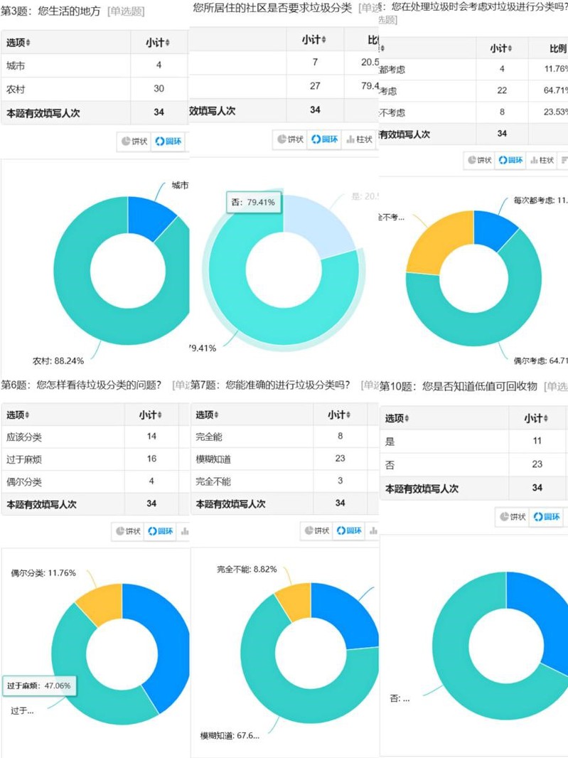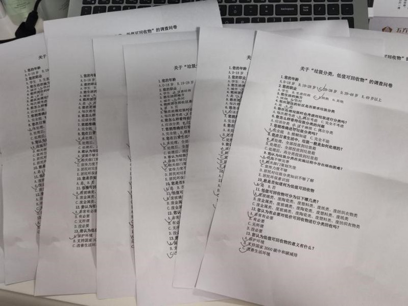 此次调研为线上线下相结合的方式,线下街头采访了八位普通居民及两位环卫工人,线上收集了三十四份调查问卷。调查对象涵盖了16岁至65岁人群,其中64%人员在处理垃圾时偶尔会考虑对垃圾进行分类,47%人员觉得垃圾分类过于麻烦,67%对垃圾具体分类较为模糊,绝大多数人对低价值可回收物不太了解,无法正确辨别何为低价值可回收物。