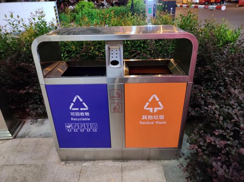 通过走访附近街道,可发现乡镇地区的垃圾分类情况仍然比较糟糕,基本只设置了可回收与其他垃圾两种类型的垃圾桶,更有完全不进行分类的几个大垃圾桶。可见乡镇地区的垃圾分类意识还是较为薄弱,设施也仍不完善。
