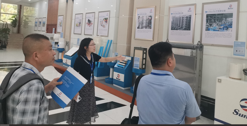 座谈会前,三达膜产品开发部总监姚萌博士带领大家参观了博士后科研工作站和膜分离工程技术研究中心,详细介绍了三达膜公司的产品在家用净水器、医药及食品等工业分离等领域全方位的膜技术应用情况,以及石墨烯黑金膜的研发、分离膜在盐湖提锂的应用方面取得最新成果。