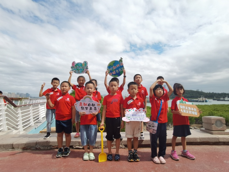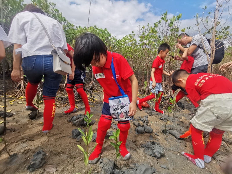 红旗下长大,种下一株小红树。本次活动,孩子们和志愿者们在海沧湾畔共种下近100秋茄幼苗。未来,这些小树苗将和它们身旁的百亩红树林一起,守护美丽的蓝色海湾。