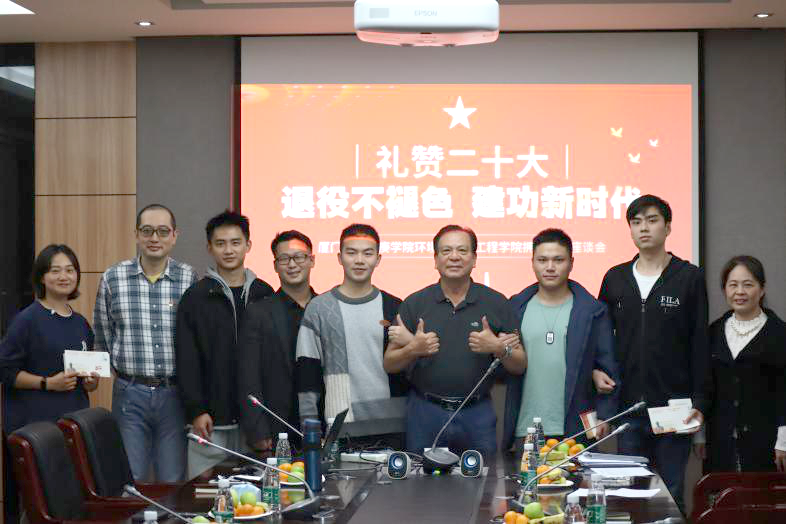 为加强意识形态引导和爱国主义教育,切实推动环境科学与工程学院广大青年学生积极学习贯彻落实党的二十大精神,11月30日,厦门大学嘉庚学院“礼赞二十大,退役不褪色,建功新时代”环境科学与工程学院拥军活动座谈会在生化大楼C416会议室展开。