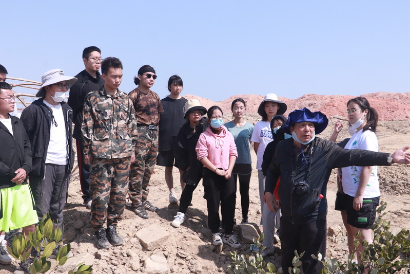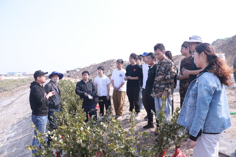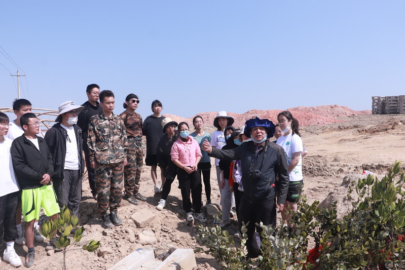在参与劳动前,卢昌义院长为学生们讲述了红树林背后,是一笔重要的生态账。红树林起到调节改良土壤、安全防护等作用,能改善机场环境存在的空气和噪音污染问题,保障飞行安全。同时种植红树林也有利于防止外来物种入侵,保护生物多样性,单就互花米草入侵,会加速抬高滩涂,使潮汐流减弱,以致滩涂板结和动物退失,让生物多样性下降。