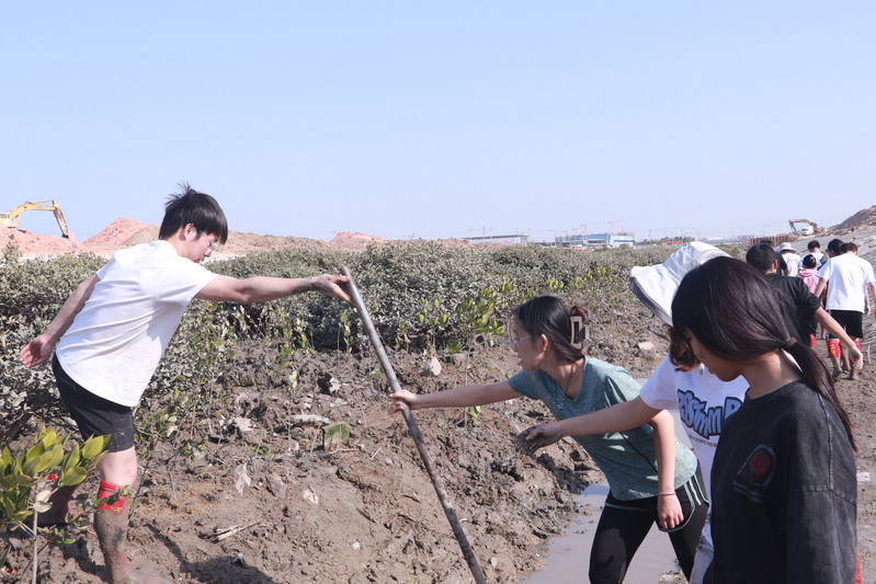 本次劳动教育依托《生态工程学》和《“双碳”战略概论》课程,师生参与《机场片区大嶝岛西侧护岸及环嶝路工程红树林生态补偿项目》红树林生态工程生产实践,实现了教学、科研与服务社会紧密结合。同时学子们通过扎根泥滩、参与艰苦生产实践劳动,体验生态工程类职业岗位,体悟工匠精神。