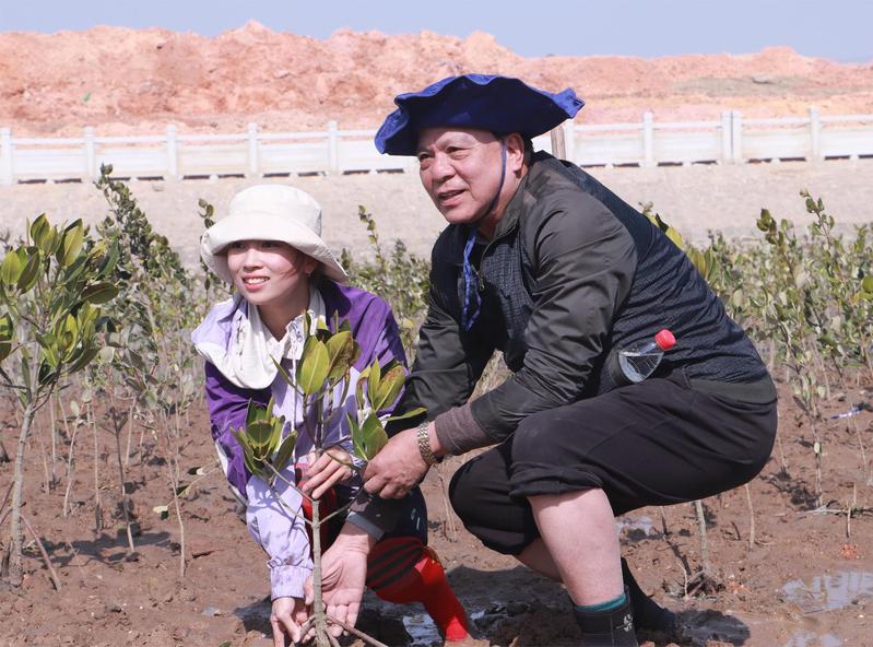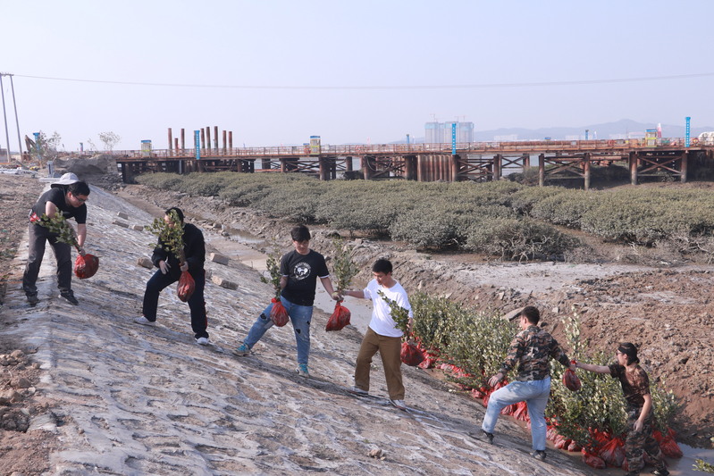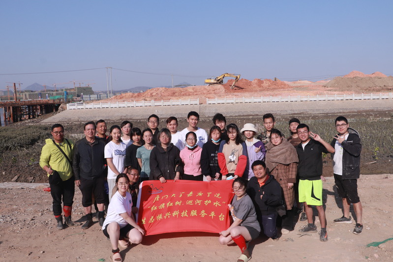 3月4日至5日,在福建省学校劳动教育指导委员会指导下,在厦门大学嘉庚学院环境科学与工程学院院长卢昌义的带领下,院长助理、劳动教育与社会实践工作负责人周亮组织环境科学与工程学院师生,前往大嶝岛蟳窟桥施工处进行大嶝岛机场红树林苗的卸苗和种植工作。